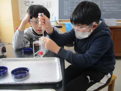 理科では、水溶液の学習を始めています。それぞれの水溶液の特性を実験を通して理解していました。