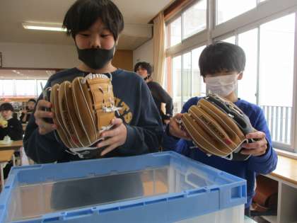 大谷選手からのグローブ (6年生) 公開日 2024/02/02 更新日 2024/02/02 6年生 大谷選手からのグローブが届きました。子供たちは「実際にキャッチボールしたい」など、野球に興味をもっているようでした。