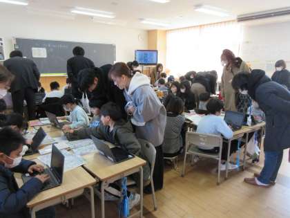 学習参観(3年生) 公開日 2024/02/03 更新日 2024/02/03 3年生 学習参観では、昔と今の町の様子を比較し、気付いたことをジャムボードに打ち込みました。お家の人にも手伝ってもらって、たくさん違いを見付けることができました。