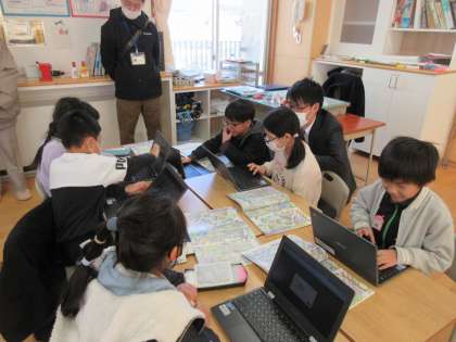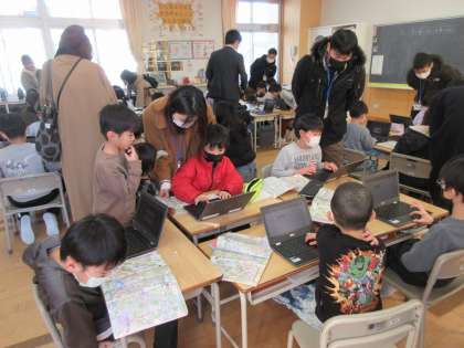 学習参観では、昔と今の町の様子を比較し、気付いたことをジャムボードに打ち込みました。お家の人にも手伝ってもらって、たくさん違いを見付けることができました。