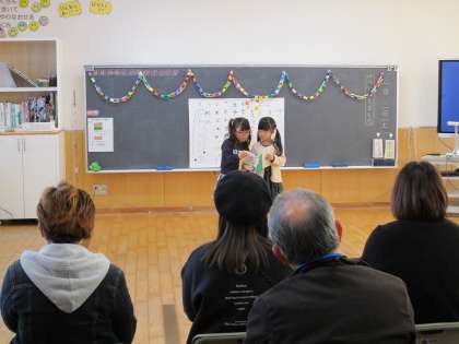 学習参観 できるようになったこと発表会(1年生) 公開日 2024/02/03 更新日 2024/02/03 1年生 今日の学習参観では、1年生になってからできるようになったことを発表する「できるようになったこと発表会」を行いました。たくさんの保護者の方の前で、堂々と発表することができました。