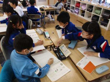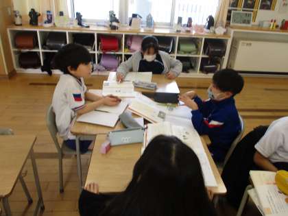 国語科の学習(3年生) 公開日 2024/02/16 更新日 2024/02/16 3年生 国語科の学習では、「わたしたちの学校じまん」の単元で、学校のすてきな場所をグループの友達と相談して決めました。書き出しや選んだ理由、まとめなど、書く部分をグループで分担し、自分の担当箇所を責任をもって作成していました。