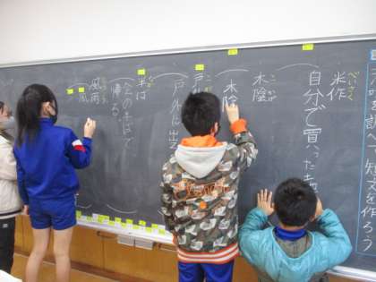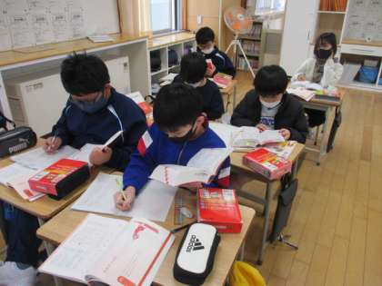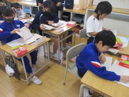 国語科の授業で、なじみのない熟語の意味を辞書で調べ、短文を作りました。