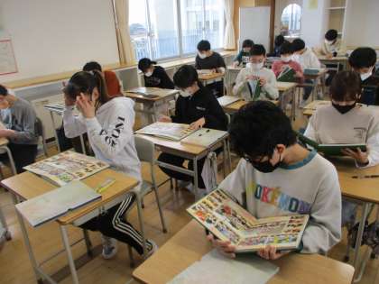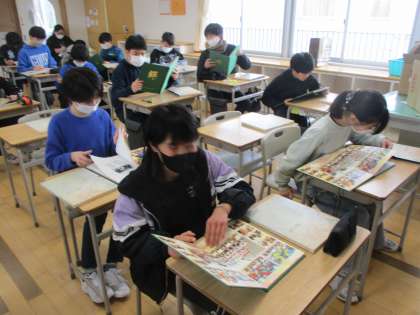 卒業アルバムを配りました。昔の写真を見ながら小学校生活を振り返っていました。