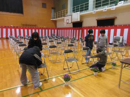 5年生みんなで役割を分担し、卒業式の前日準備を行いました。