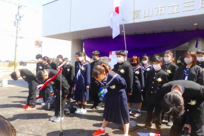 門出の式 1 公開日 2024/03/18 更新日 2024/03/18 三成っ子 卒業生と在校生の代表が前に出て、お互いにエールを交換しました。卒業生が巣立っていく時には、在校生も卒業生も笑顔でお別れをしていました。
