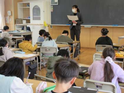 修了式後、教室で春休みについて話し合いました。