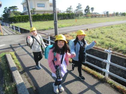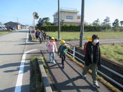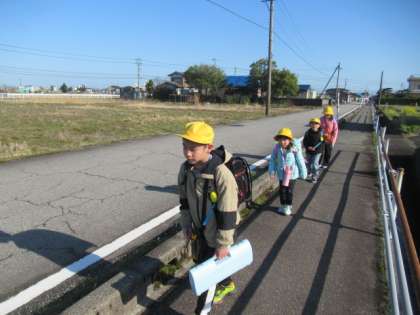 少し肌寒いですが、爽やかな青空が広がる中、がんばって登校しています・・・