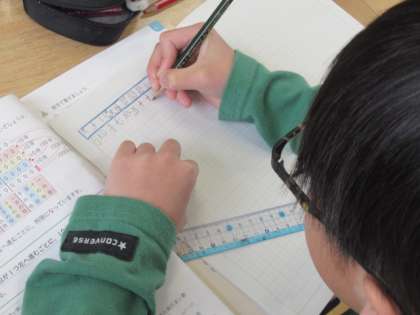 がんばっています・・・ 鉛筆の持ち方(親指と人差し指の先で鉛筆をつまむ)も正しいですね。