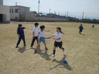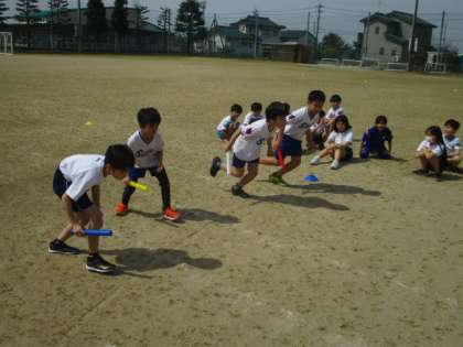 色団に分かれてリレーをしました。友達を応援する姿が印象的でした。