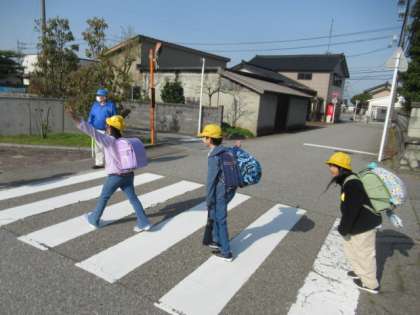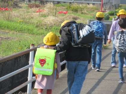 水橋駅の南側から歩いてくる子供たち・・・ 歩き疲れた下学年を気遣う様子が温かいです!