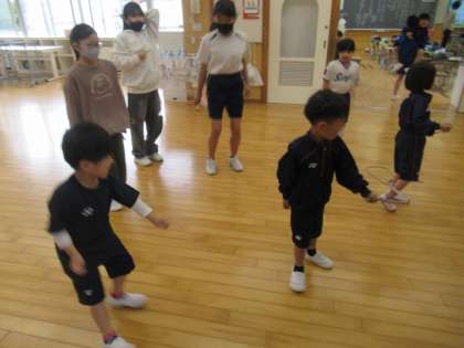 動画を見ながらダンスの練習・・・ 縄跳び遊び・・・ 朝から楽しそうです!