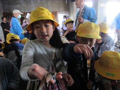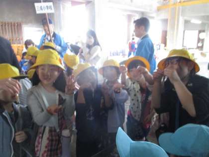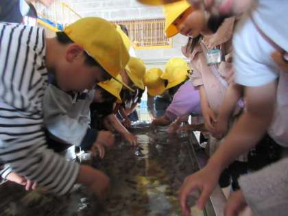 ホタルイカ見学会2(2年生) 公開日 2024/04/17 更新日 2024/04/17 2年生 ホタルイカ見学会では、ホタルイカが光る様子を実際に見て感動したり、ホタルイカを触ったりしました。ドキドキ・・・