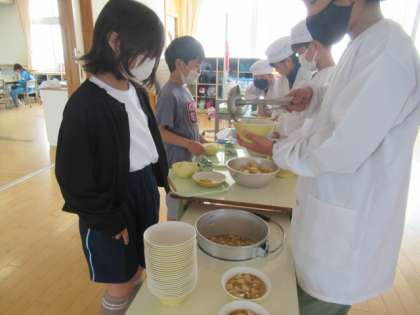こぼすこともなく、ていねいに盛りつけていきます・・・