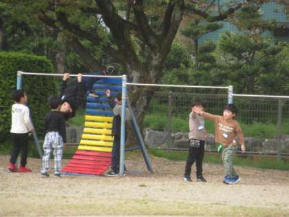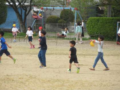 外遊びをする子供たちがたくさんいます・・・