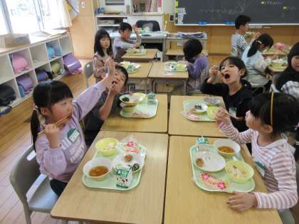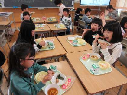 給食にホタルイカが出たよ(2年生) 公開日 2024/04/19 更新日 2024/04/19 2年生 今日の給食にホタルイカが出ました。先日のホタルイカ見学会から、「たくさんおかわりしたよ」「苦手だったけれど食べてみたら美味しかった」と味わった子供たちでした。