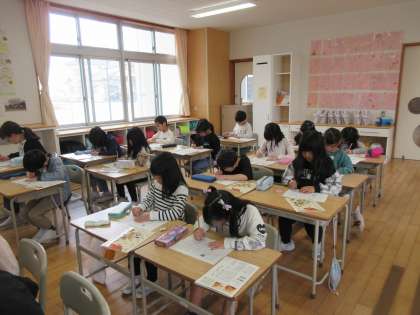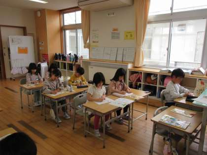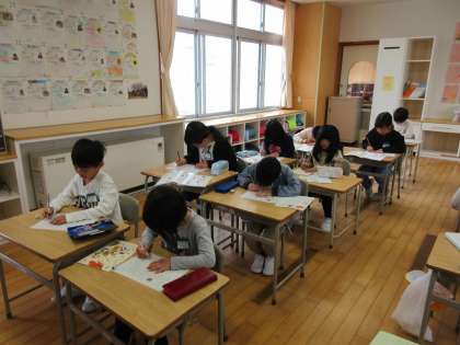 書き順に気を付けながら、お手本よく見て漢字の練習をしました。とても集中して、素敵な姿勢で取り組みました。