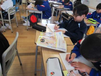 体のつくりの学習・・・ しっかりノートをとります。鉛筆の持ち方の正しいですね。