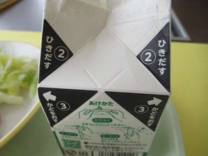 牛乳パックの“進化”? 公開日 2024/04/26 更新日 2024/04/26 給食室 環境保全、持続可能な世の中へ・・・ 給食で提供される牛乳には、プラスチック・ストローを使わないで飲む手順が印刷されています。資源を大切にするためにも、ぜひ、お試しを!