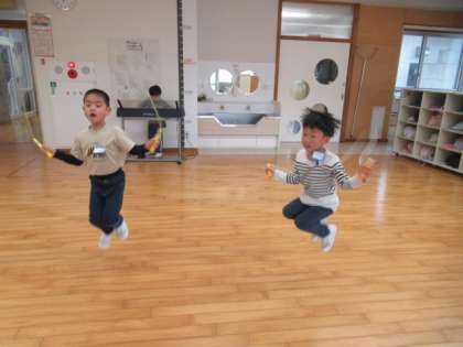 縄跳びをしたり、オルガンを弾いたり・・・ 体育館で鬼ごっこをしたり・・・ 思い思いに過ごし、楽しそうです。