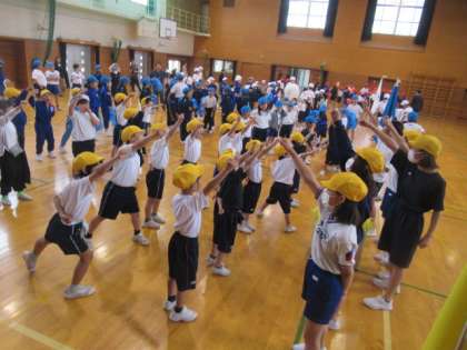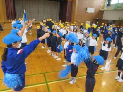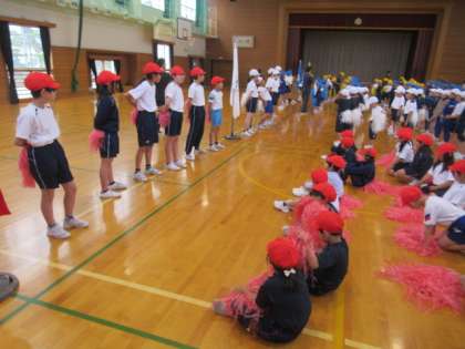 降雨によりグラウンドでの練習はできないので、体育館で応援練習をしました。 どの団も気合いが入ってきました・・・