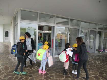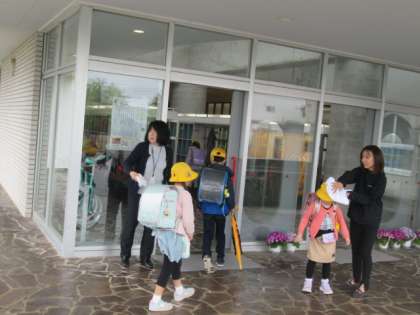 児童玄関前では・・・