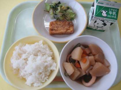 8日(水)今日の献立 公開日 2024/05/08 更新日 2024/05/08 給食室 ・ごはん ・牛乳 ・いかと野菜の煮物 ・昆布和え ・揚げ出し豆腐のごまだれかけ ※11時40分、検食終了。 今日も美味しく出来上がっています。