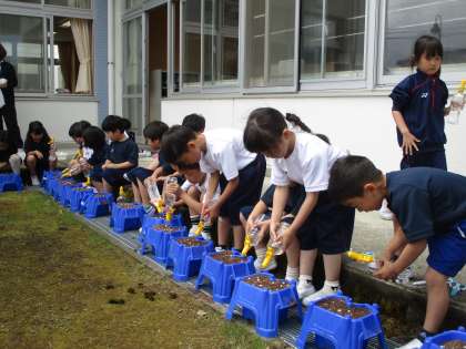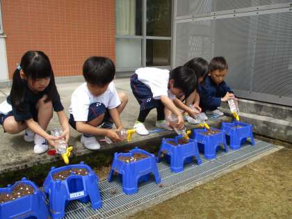 最後に、「大きく育ってね。」「きれいなお花が咲きますように。」と言いながら水やりをしました。