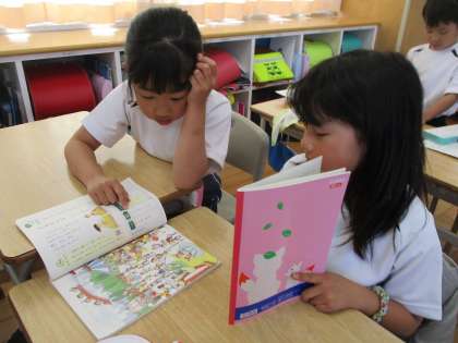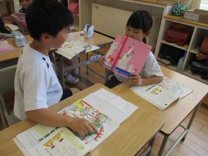 国語科 ともだちはどこかな(2年生) 公開日 2024/05/09 更新日 2024/05/09 2年生 国語科「ともだちは どこかな」では、教科書の挿絵から、人物の特徴を聞いて(質問して)見付ける活動をしました。 大事なことを落とさずに聞く(質問する)ことができましたね。