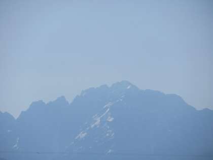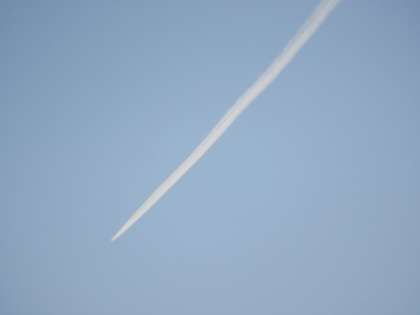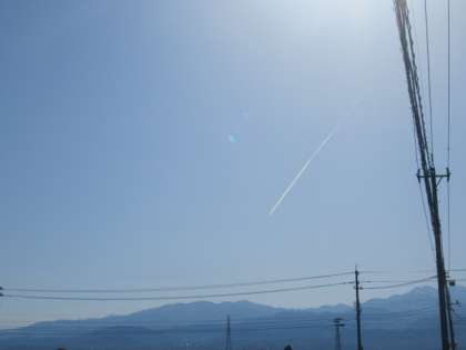 校舎の東側には「立山連峰」。剱岳の雪も、かなり少なくなりました・・・ なぞの飛行物体? 飛行機雲?