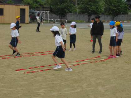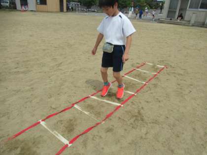 全校 チャレンジタイム 公開日 2024/05/15 更新日 2024/05/15 3年生 自分のめあてに向けて・・・ 運動コーナーを選びます。 「ラダー・コーナー」では・・・ リズムよく、そして速く足が動いています。