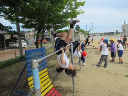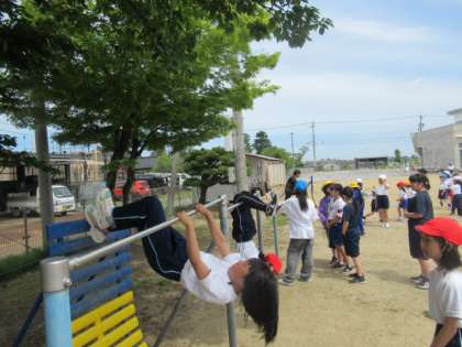 「鉄棒コーナー」では・・・ 逆上がりなど、自分がまだできない技にも積極的に挑戦しています。