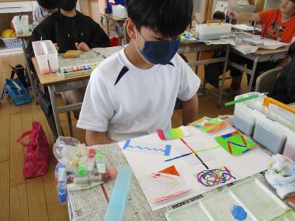 さまざまな模様を描いた「気持ちカード」を組み合わせて心のもようを表現しました。