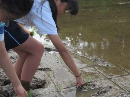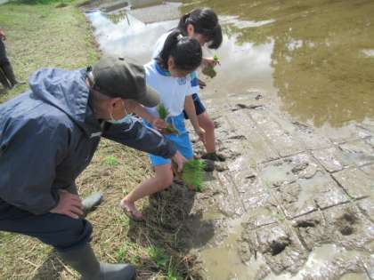 ドキドキ、ワクワク・・・ 約半数の子供たちは、「初めて」の田植え体験です!