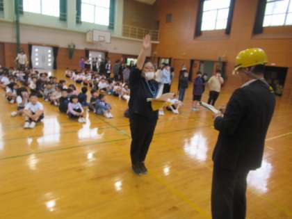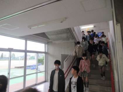 避難訓練 公開日 2024/05/20 更新日 2024/05/20 3年生 近隣の民家から出火(想定)・・・ 「お・は・し・も・て」を意識しながら、落ち着いて体育館へ。 (おさない・はしらない・しゃべらない・もどらない・ていがくねんをさきに) 今回は、火災発生の場合の「避難行動」「避難ルート」の確認をしました。