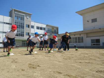 自分の立てた目当てに向かって、種目(50m走、ラダー、鉄棒、ボール投げなどから)を選びます。