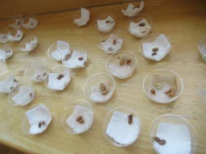 「植物の発芽と成長」実験中・・・