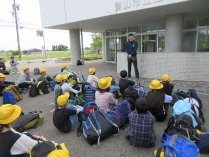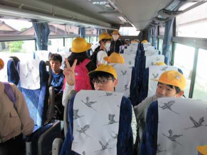 6年生が立山青少年自然の家へ宿泊学習に出発しました。 全員、笑顔での出発です。