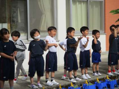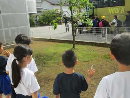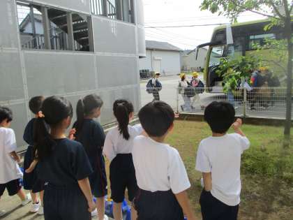 今日から宿泊学習へ行く6年生に「行ってらっしゃい」と元気に声をかけていました。