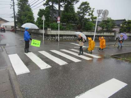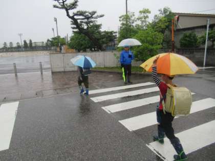 強風後、雨となりました。 台風1号の影響でしょうか・・・ がんばって登校しています。