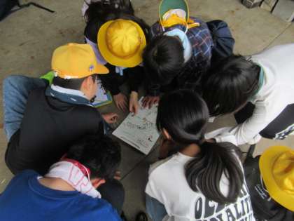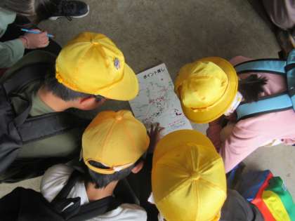 作戦会議・・・地図の見方もバッチリ! いよいよ出発! 「こっちに、ありそう〜」