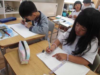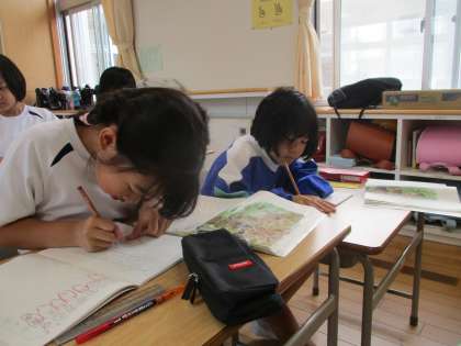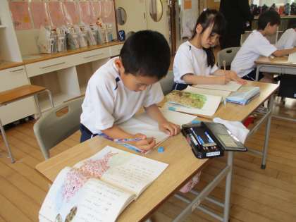 国語科 スイミー(2年生) 公開日 2024/06/05 更新日 2024/06/05 2年生 スイミーの学習が始まりました。初めて読んだ感想をノートに書くと、真剣にたくさんの思いを書き出していました。