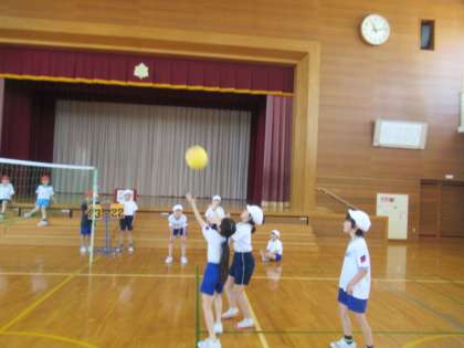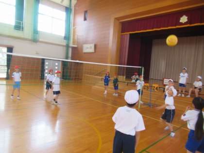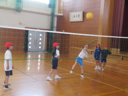 ネット型ゲーム(キャッチ・バレー)で、熱戦が・・・ ガンバレ!