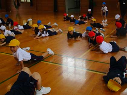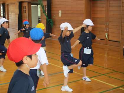 体育科「まねっこあそび」(1年生)