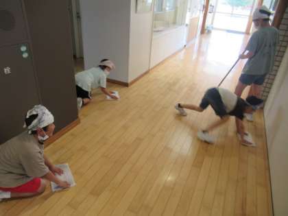14日(金)の様子です。 <上>保健室前廊下 <中>図書室 <下>職員室前廊下