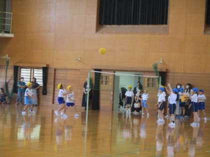 体育科「キャッチ・バレー」の様子です。