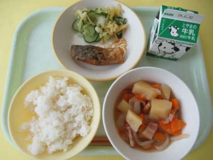 24日(月)今日の献立 公開日 2024/06/24 更新日 2024/06/24 給食室 ・ごはん ・牛乳 ・魚の梅風味かば焼き ・あわせ和え ・ベーコンとじゃがいもの煮物 ※11時45分、検食終了。 今日も美味しく出来上がっています。