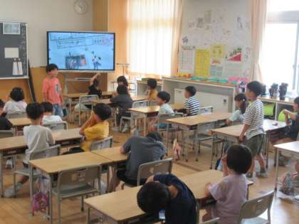 学校探検や〇〇先生とお話しして分かったことなどを堂々と話しています。