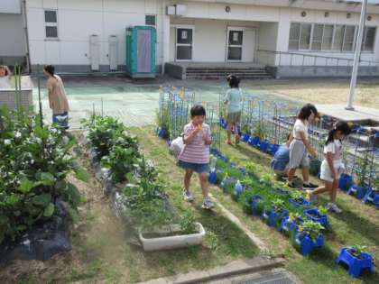 「ナスができていたよ!」 「ミニトマトも!」 朝からうれしいことがいっぱいですね。