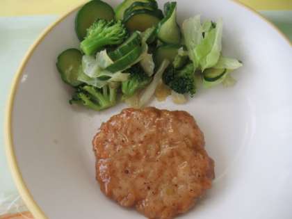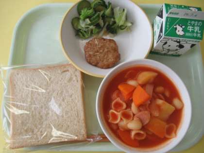 27日(木)今日の献立 公開日 2024/06/27 更新日 2024/06/27 給食室 ・食パン ・牛乳 ・チキンハンバーグ ・グリーンサラダ ・野菜とソーセージのトマト煮 ※11時45分、検食終了。 今日のメニューは、子供たちの大好きな「ハンバーグ」(2枚目の画像)です。学校給食では珍しい「チキン(鶏肉)ハンバーグ」で、言い換えると「ハンバーグの形をした“つくね”」です。美味しく出来上がっています。